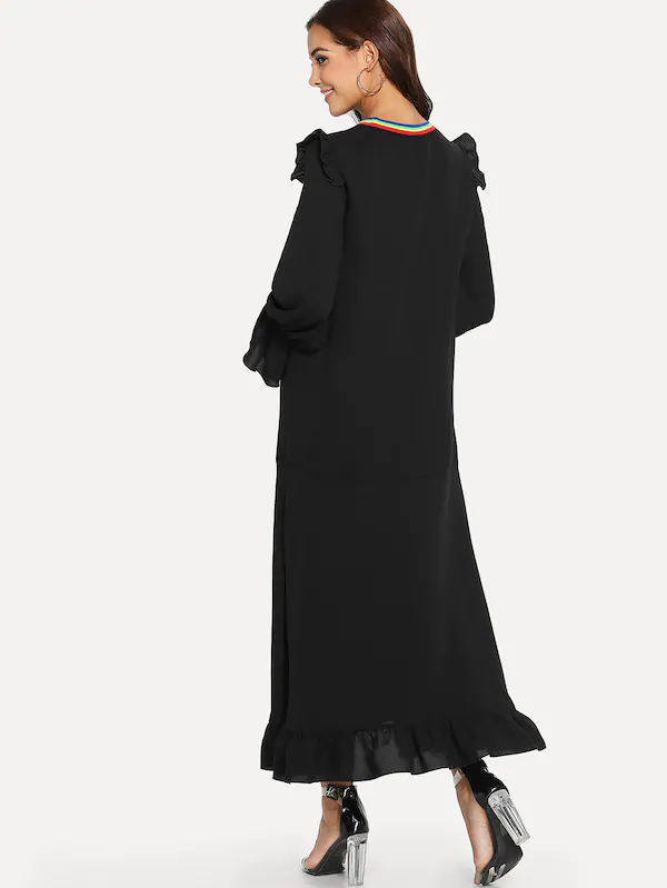 Contrast Striped Neck Ruffle Trim Letter Dress