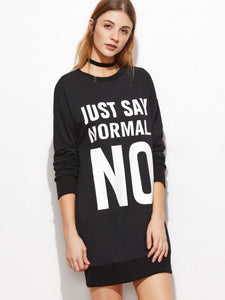 Black Letter Print Drop Shoulder Sweatshirt Dress