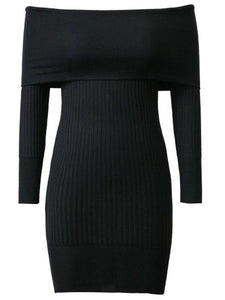 Black Ribbed Off The Shoulder Knit Bodycon Dress
